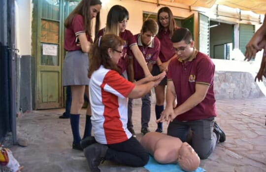 Alumnos del nivel primario, docentes y personal del establecimiento pudieron aprovechar las técnicas y conocimientos brindamos por los capacitadores, cubriendo módulos de formación que incluyó seguridad escena situación, abordaje de escena, valoración inicial y cinemática de trauma, urgencias respiratorias, manejo del estado de shock y oxigenoterapia, reanimación en escena, aspectos básicos en situación de atragantamiento y desmayo, entre otros.