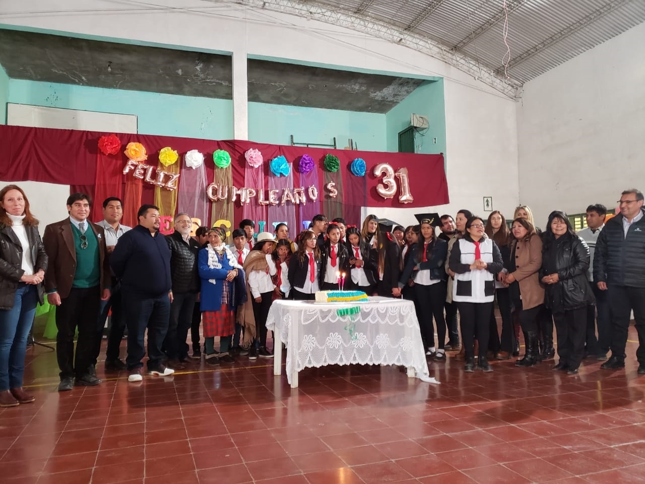 Con la presencia del intendente de Hualfín Marcelo Villagra, la Directora del Establecimiento Cecilia Carrizo y el supervisor de escuelas secundarias Sebastián Aibar, la institución festejó con un gran acto del que también fueron parte aquellos directivos y docentes que formaron parte de la historia de la escuela.