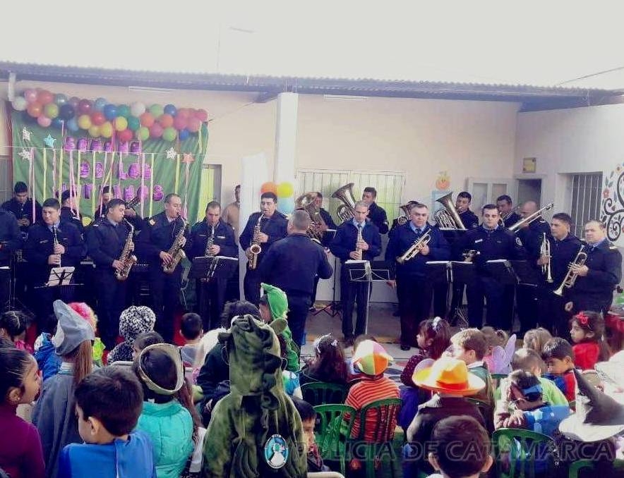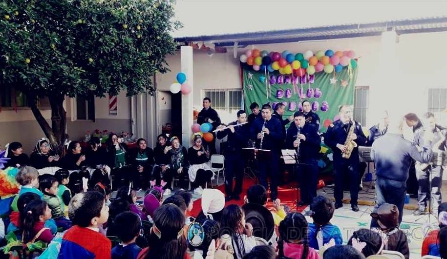 En la oportunidad, los efectivos brindaron una retreta musical a los niños de jardín de infantes de los turnos mañana y tarde que concurren a dicha institución, docentes y directivos del establecimiento, quienes compartieron un momento especial de esparcimiento, en el marco del Día de los Jardines de Infantes y de Las Maestras Jardineras, a quienes también les rindieron un sentido homenaje por la labor que realizan a diario.
