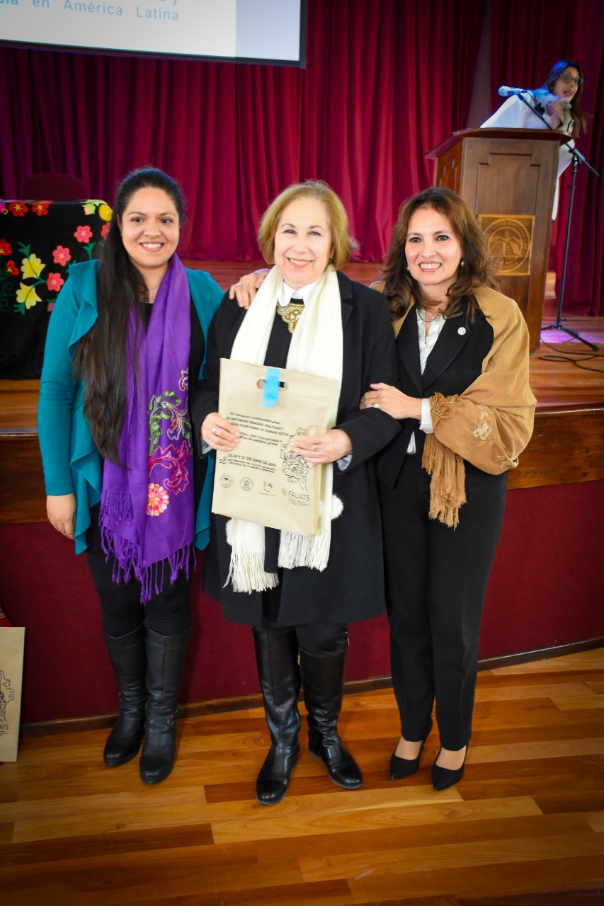 En el acto también se le entregó una distinción por su trayectoria a la docente e investigadora de la carrera en Licenciatura en Trabajo Social Mgter. María Rosa Torres de Sarquís.