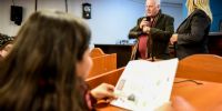 Ocupando las bancas instaladas en el recinto de sesiones “Fray Mamerto Esquiú”, los alumnos fueron recibidos por el representante del departamento Valle Viejo Jorge Malnis y la Jefa de Taquigrafía Liliana López Luna, quienes explicaron sobre el proceso legislativo.