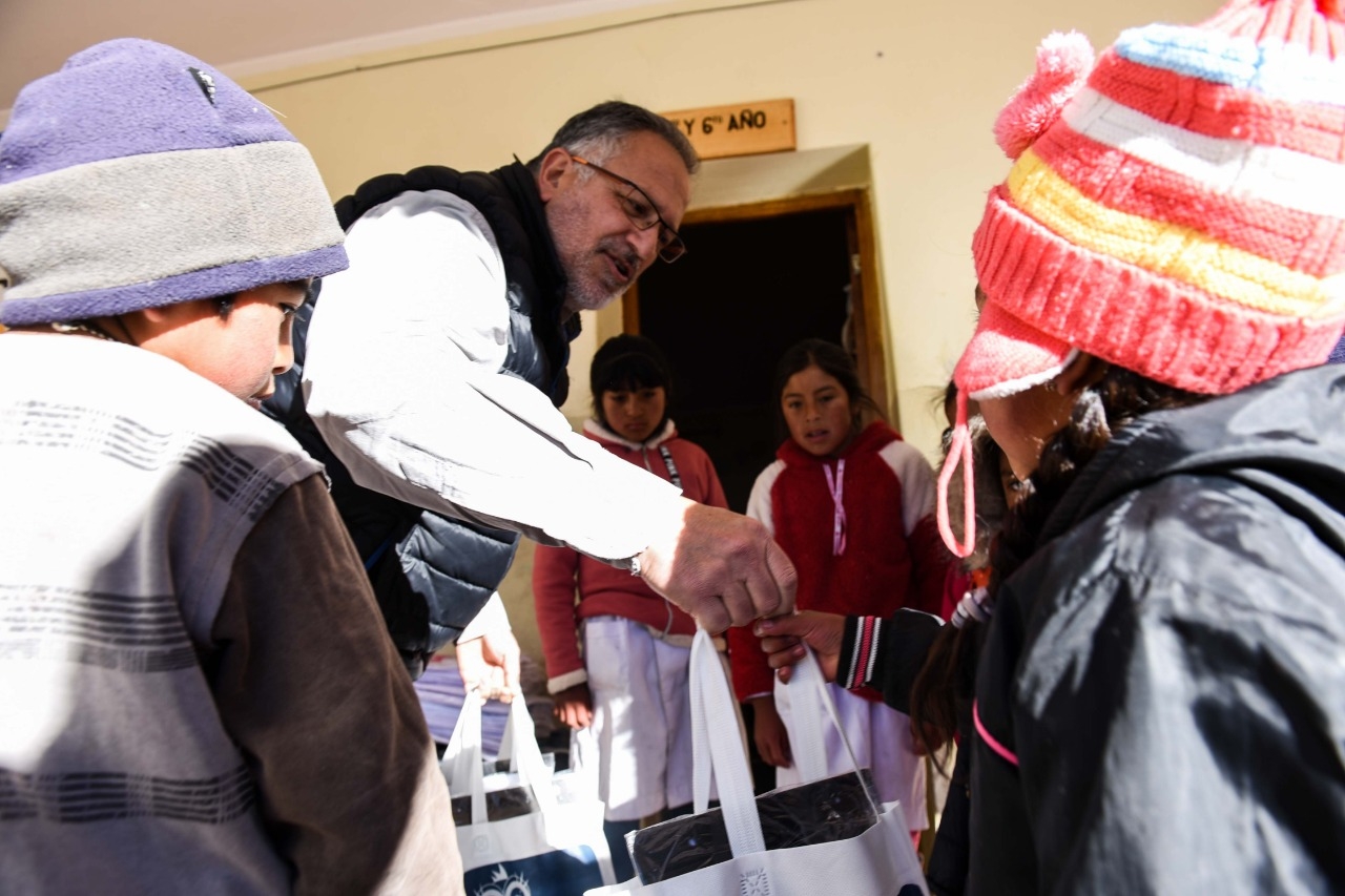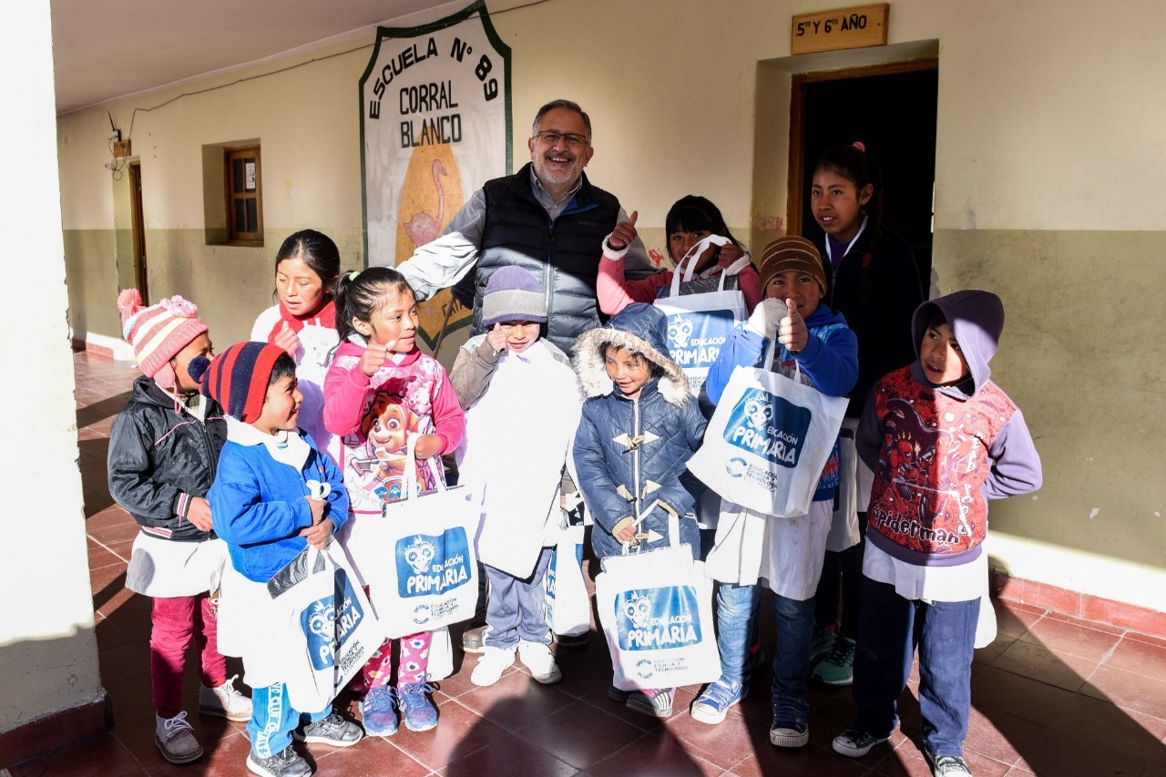 La entrega de alrededor de 800 kits y guardapolvos, comenzó el pasado viernes, en las escuelas de nivel Primario y Secundario de Laguna Blanca, Corral Blanco, Yerba buena, Villa Vil, Barranca Larga y Morteritos.