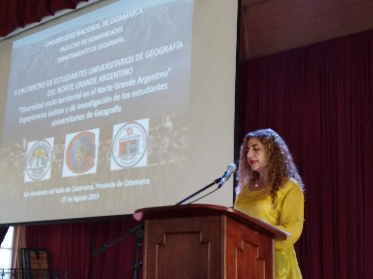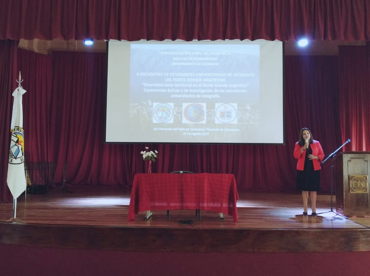 En el marco de las XVIII Jornadas Nacionales de Geografía que se ponen en marcha mañana miércoles, hoy se concretó el acto formal de apertura del II Encuentro de Estudiantes de Geografía del Norte Grande, que se desarrolló en el Aula Magna de la Universidad Nacional de Catamarca.