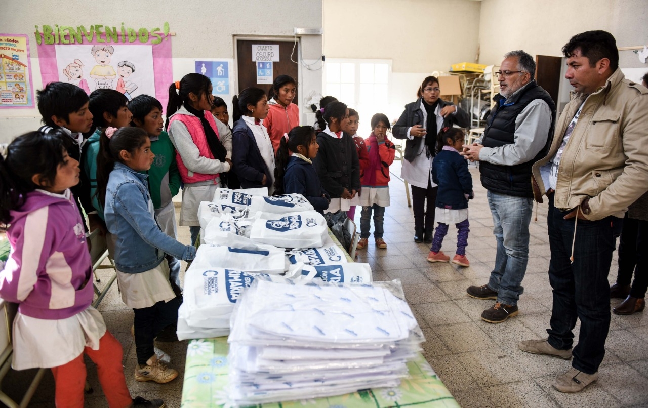 La entrega de alrededor de 800 kits y guardapolvos, se realizó en las escuelas de nivel Primario y Secundario de Laguna Blanca, Corral Blanco, Yerba buena, Villa Vil, Barranca Larga, Morteritos, Papachacra, Rodeo Gervan, Cuesta de Vicuña Pampa, El Cajón, Culampajá, Minas de Culampajá y Huasi Ciénega.
