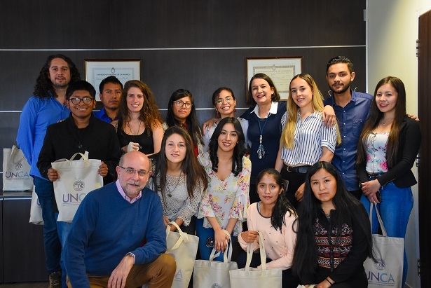 El rector de la UNCA, Ing. Flavio Fama, acompañado por la secretaria de Vinculación y Relaciones Internacionales, Lic. Beatriz López, recibieron en el Rectorado a los estudiantes de otros países que arribaron recientemente a Catamarca mediante distintos programas de movilidad estudiantil. Los jóvenes son oriundos de Perú, Chile, Colombia, México y España.