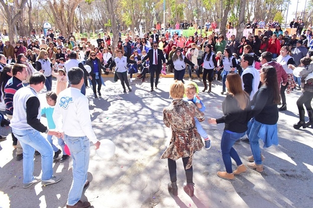 Los números alusivos, estuvieron a cargo de los alumnos. Por su parte, el nivel inicial, de la sala 4, bailó un merengue, a cargo del Prof. Carlos Díaz Meléndez, y el nivel primario alumnos y docentes cantaron la canción “Brindemos por los 100 de nuestra escuela”; el nivel secundario bailó el pericón, a cargo del Prof. Rodrigo Vargas. Se cantó el cumpleaños feliz, con suelta de globos y entrega de torta a todos los presentes. Posteriormente, las autoridades, realizaron el descubrimiento de placas gubernamentales en el edificio Centenario.