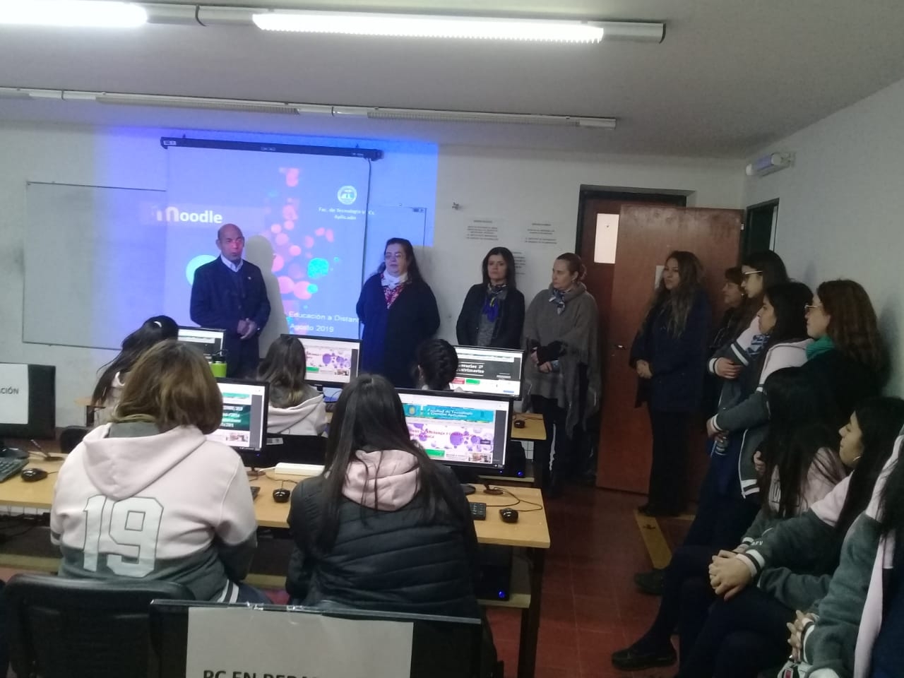 Las autoridades de la Facultad le dieron la bienvenida, instando a las alumnas que se involucren en la experiencia porque esta clase de competencias (las digitales) son necesarias adquirirlas en la vida universitaria y es muy útil que se vayan adquiriendo desde antes de ingresar.