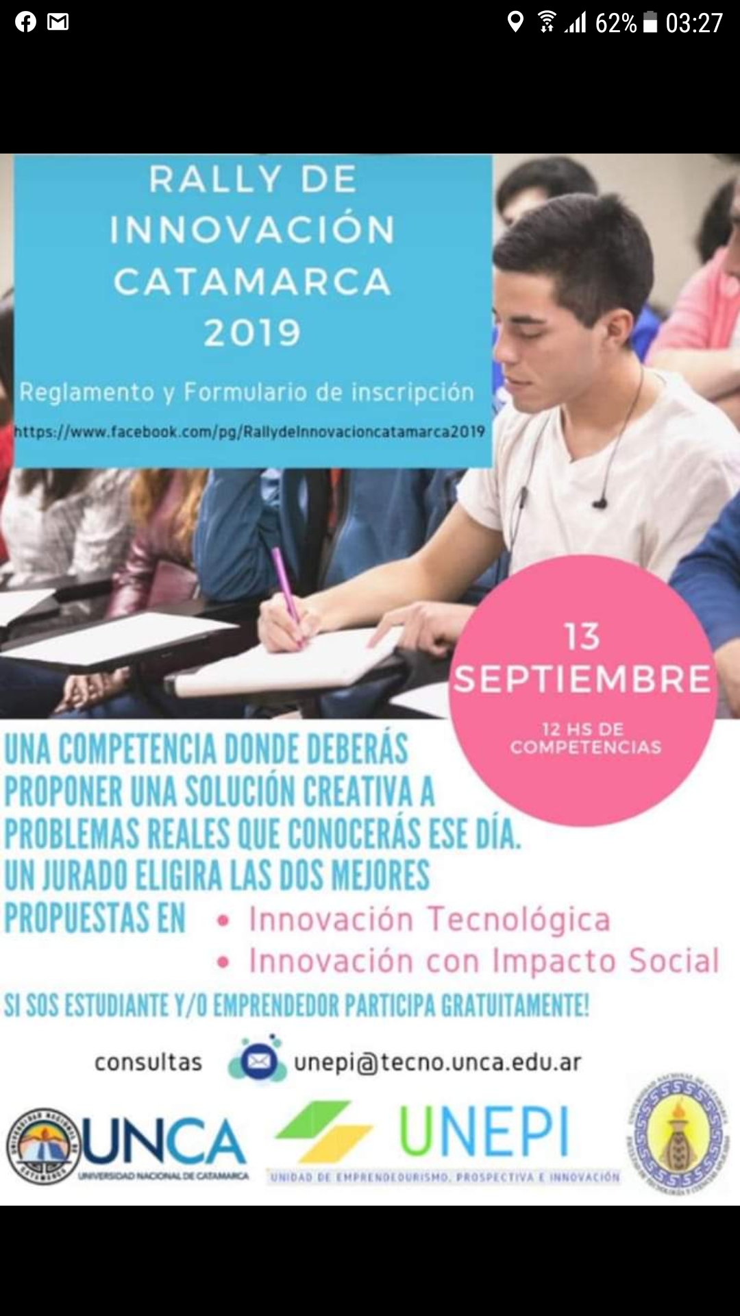 El director de la UNEPI, Ing. Humberto Gallo, al formular el anuncio, puso de relieve que si bien la Facultad de Tecnología y Ciencias Aplicadas viene participando desde hace varios años del Rally Latinoamericano de Innovación “este año, a partir de la creación de la UNEPI, se organiza por primera vez el evento desde Catamarca”.