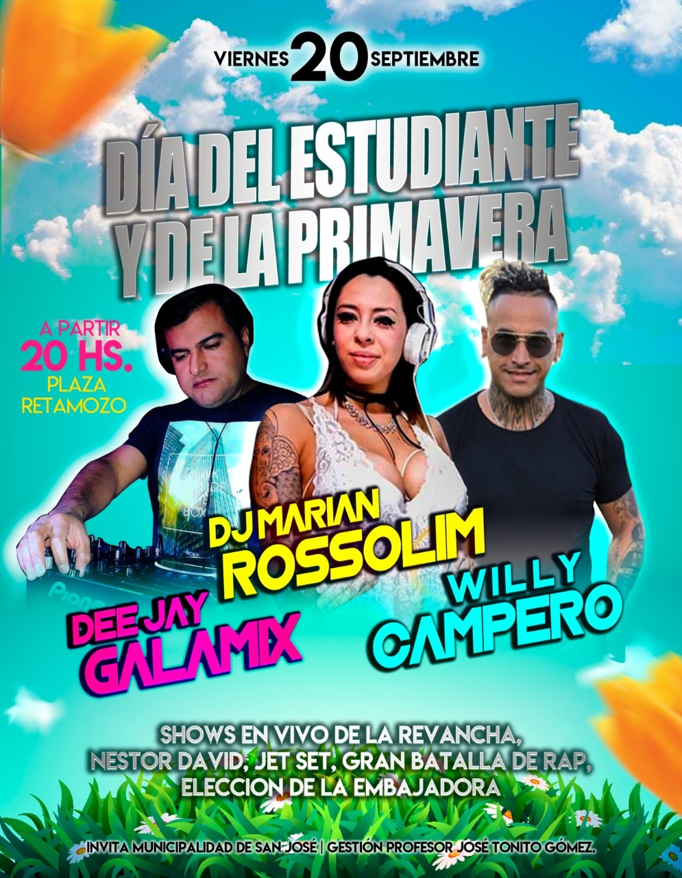 Para esta noche, en el escenario montado en la esquina de 16 de agosto y San Martín, a partir de las 20 horas, estarán presentes Jet Set, La Revancha, Nestor David, Willy Campero, Djs Marian y Djs. Galaxy y la elección de la embajadora de los estudiantes de San José.