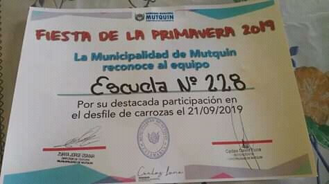 La comunidad educativa de la Escuela Primaria N°228 "Bartolomé Mitre", de la localidad de Mutquín, se llevó el primer premio a la carroza más ornamentada.
