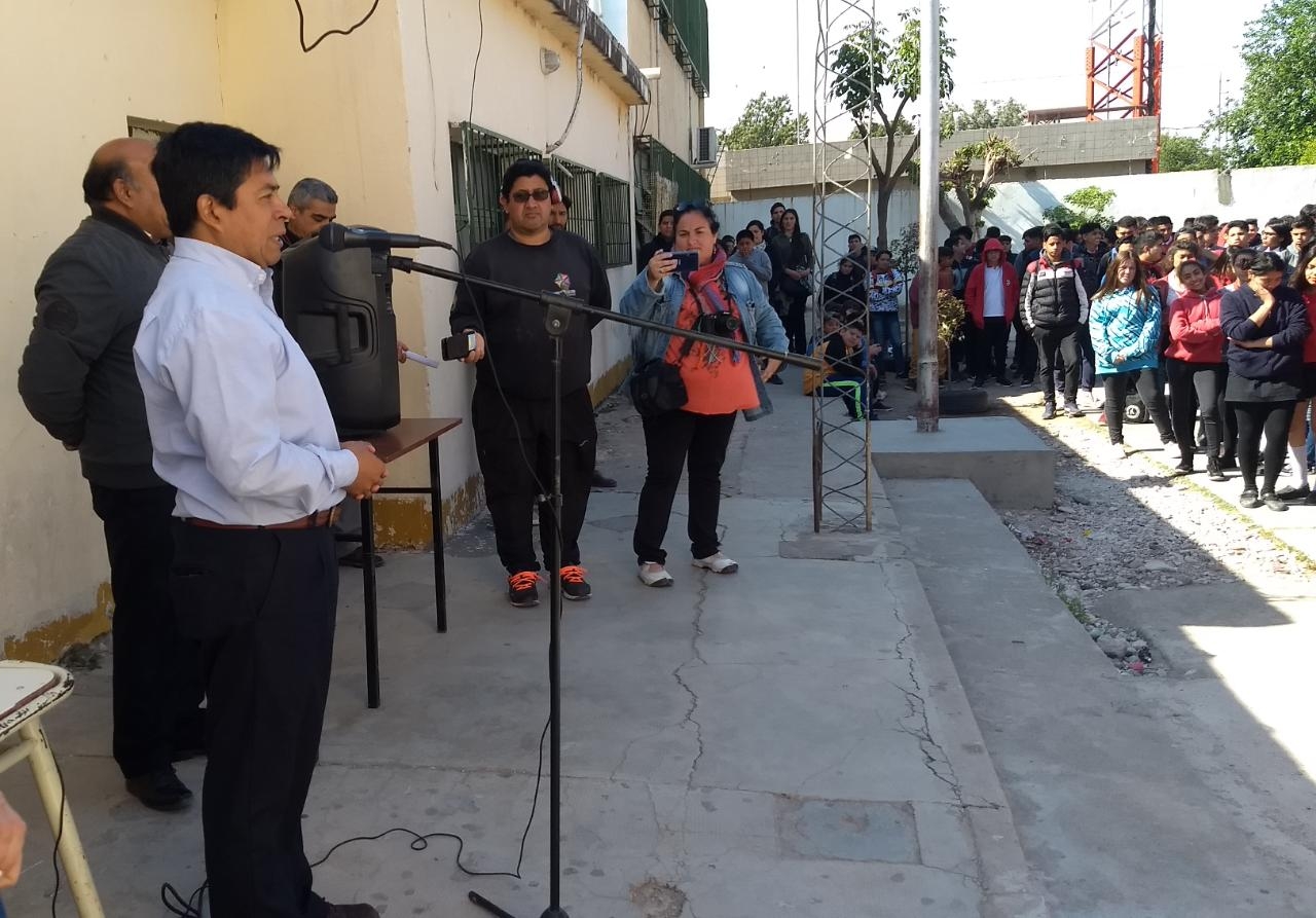 Estuvo presente el Director Provincial ING. Rodolfo Vivanco, el Senador Ariel Espinoza, el ex Director Prof. Roque Morales, la bienvenida estuvo a cargo del Director de la EPET 1, Prof. Juan Carlos Nieva.