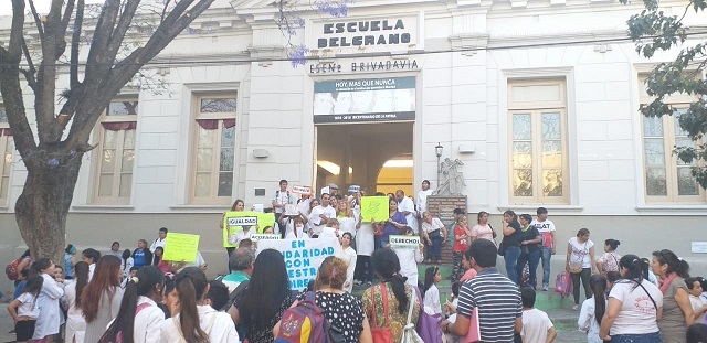Según indicaron, la medida se realizó con el objetivo de visibilizar la violencia que sufren los docentes en muchos casos, y para solidarizarse con la vice directora agredida.