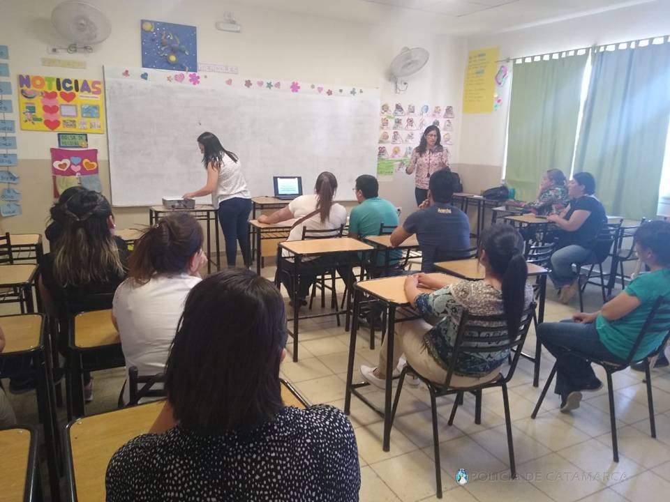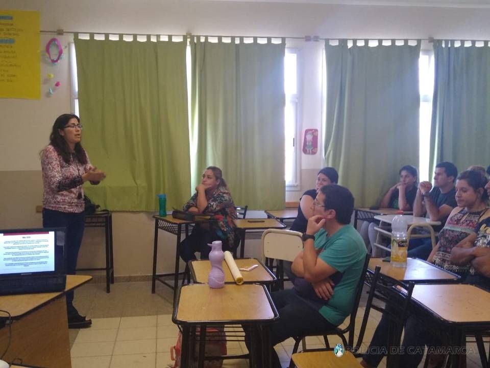 La charla estuvo a cargo de las Licenciadas en Trabajo Social Fernanda Seco y Of. Subinspector Ana Laura Gutiérrez, pertenecientes a la Comisaría Novena y al Destacamento Policial Valle Chico respectivamente.
