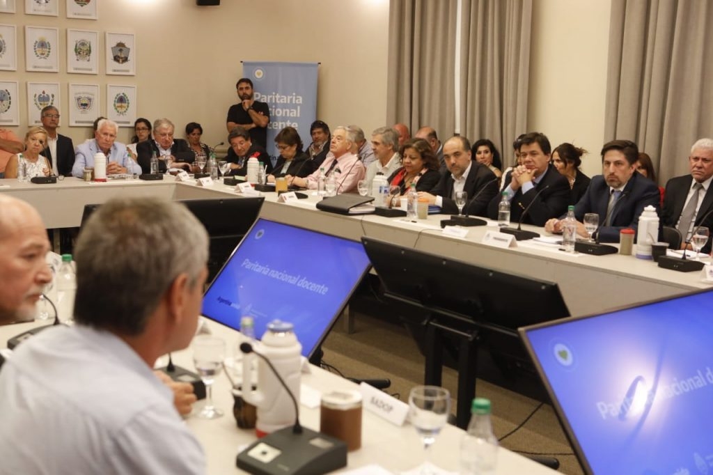 La reunión inaugural contó con la presencia de las cinco entidades gremiales con representación nacional, y los ministros de Educación y Trabajo, Nicolás Trotta y Claudio Moroni. El encuentro se llevó a cabo en el Palacio Pizzurno, sede del Ministerio de Educación de la Nación.