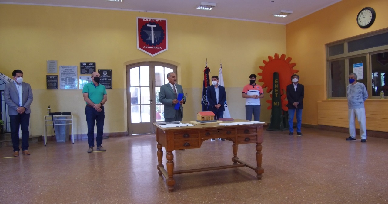 Estuvieron presentes, el rector de la UNCA, Ing. Flavio Fama, el director de la ENET, Prof. Rafael Toledo y el intendente de Fray Mamerto Esquiú, Dr. Guillermo Ferreira.