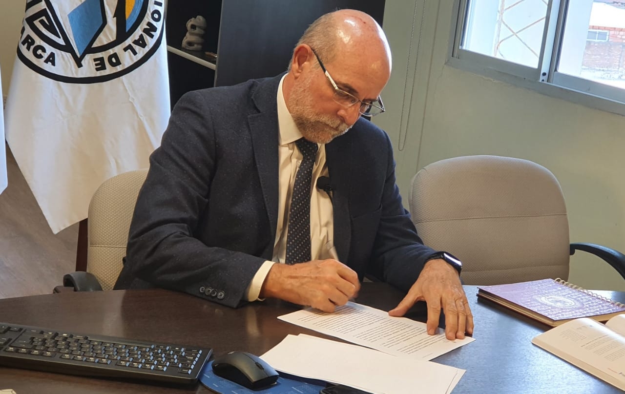 “Firmamos la convocatoria a la licitación para la construcción del 1° y 2° piso del edificio del Agrupamiento de Aulas Comunes, esto va a significar la incorporación de 16 nuevas aulas de mediana capacidad, y por una inversión aproximada de 100 millones de pesos. La apertura está prevista para el mes de noviembre”, expresó el Rector.