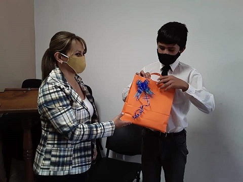 En la oportunidad Paulón entregó como obsequio una Tablet que fue recibida con mucha emoción por Gabriel ya que este elemento le facilitará la comunicación y participación en las instancias de preparación virtual.