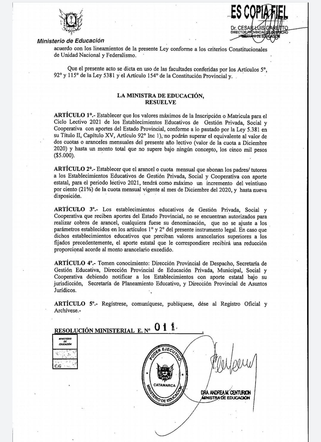 El Ministerio de Educación dio a conocer, mediante resolución, los valores máximos de inscripción y matrícula para el ciclo lectivo 2021 para colegios de gestión privada, social y cooperativa.