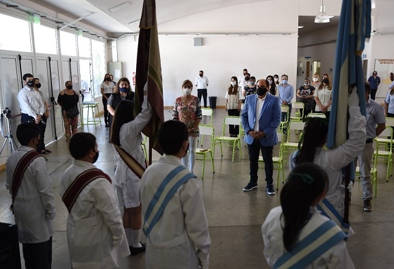 Durante el acto, el jefe comunal recibió la Bandera de Ceremonia, debido a que, en tiempos de pandemia, se complicó emitir una valoración cuantitativa para los alumnos que deberían recibir la bandera de manos de los egresados. En este sentido, Gustavo Saadi añadió: “mis queridos docentes, ustedes demostraron que ante la adversidad todo se puede. Cuando recibí la bandera me puse triste, porque me contaron que es muy difícil emitir una valoración este año, pero yo se las daría a todos los alumnos porque se la merecen, por el gran sacrificio que han hecho para llegar”.