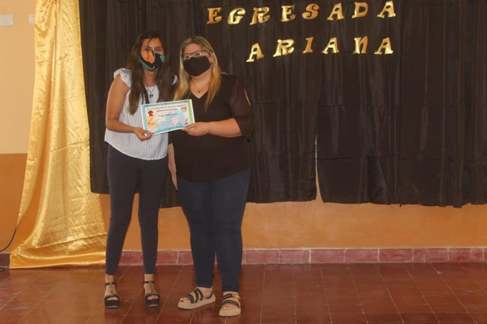 Para finalizar, y siguiendo todos los protocolos establecidos, se realizó el acto de fin de año con la presencia de la Intendente Roxana Paulón, comunidad educativa y la única egresada, Ariana Bayón.