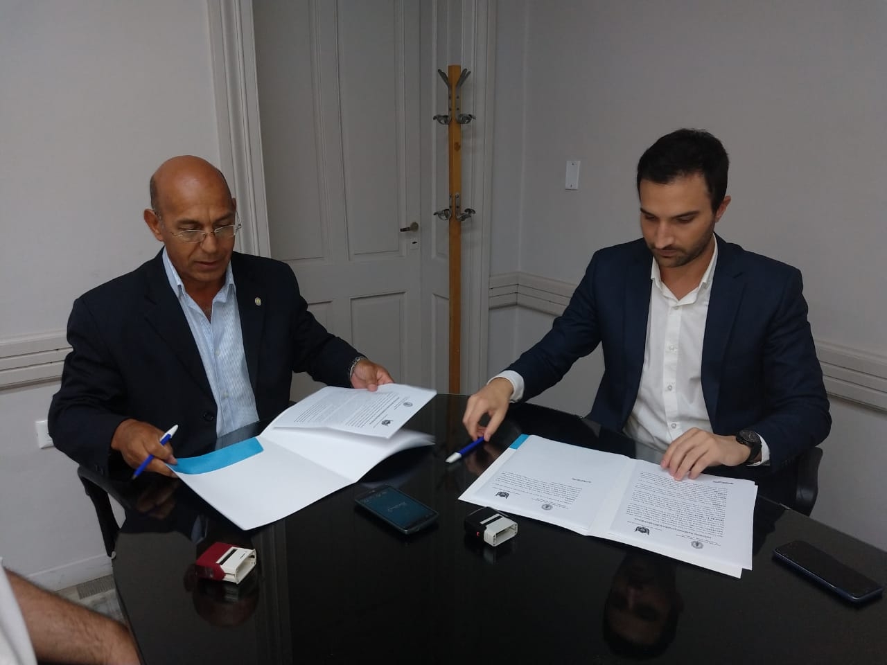 El Decano de la Facultad de Tecnología y Ciencias Aplicadas de la Universidad Nacional de Catamarca (UNCA), Ing. Carlos Savio y el ministro de Industria, Comercio y Empleo, Lic. Lisandro Álvarez, llevaron a cabo la firma de un convenio marco.