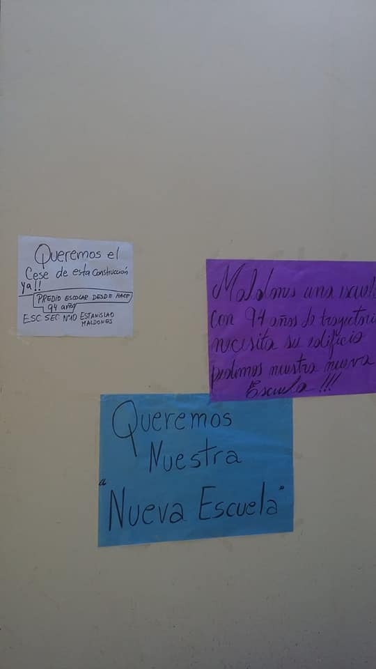 Luego de una jornada de protesta, los docentes, directivos, alumnos y padres lograron que la obra se paralice, aunque continúan en estado de alerta debido a que, hasta el momento, no recibieron respuestas del municipio.