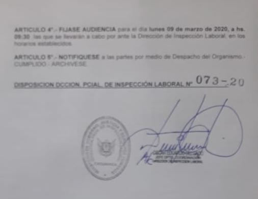 El Ministerio de Educación a fin de garantizar el normal inicio del ciclo lectivo el próximo lunes 2 de marzo, solicitó a la Dirección de Inspección Laboral la conciliación obligatoria, la cual ya fue dictada por este organismo mediante Disposición N°073/2020.