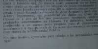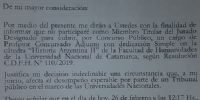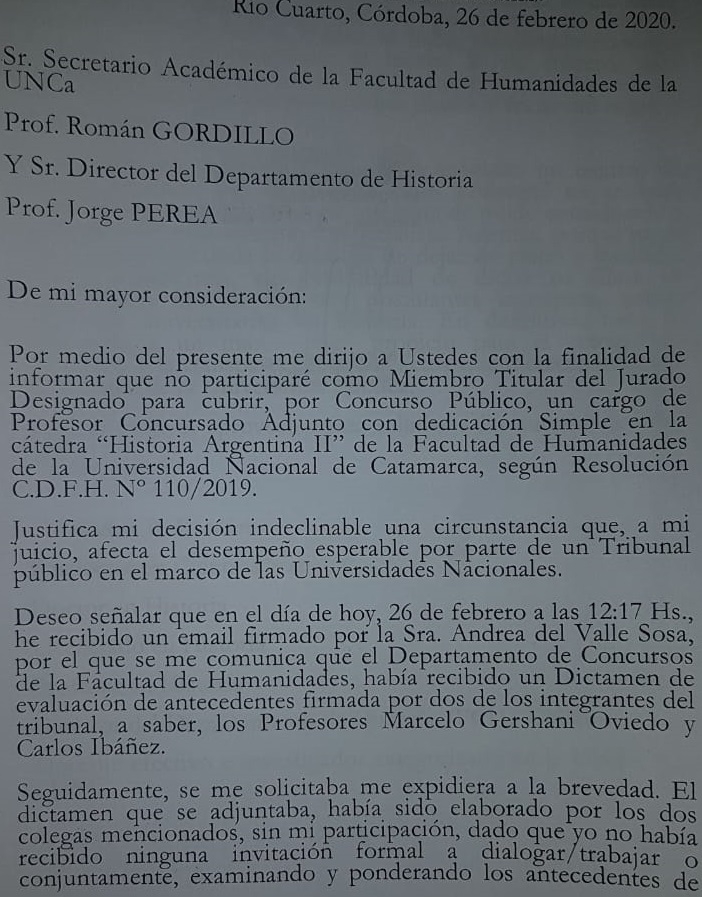 Así queda al descubierto en una nota enviada por el profesor Eduardo Escudero al Secretario Académico de la Facultad de Humanidades Román Gordillo, y al Director del Departamento de Historia, Jorge Perea.