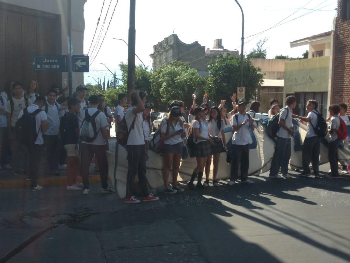 Se trata de alumnos de 6to. año del Instituto Belgrano ubicado en calle Chacabuco, quienes intentaron ingresar al colegio, pero no pudieron hacerlo porque la mitad de ellos no tenían el uniforme.