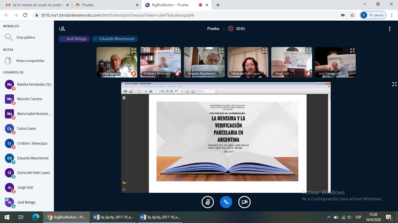 La defensa de la tesis fue transmitida por el canal de YouTube del Área de Educación a Distancia(EAD) de la citada unidad académica.