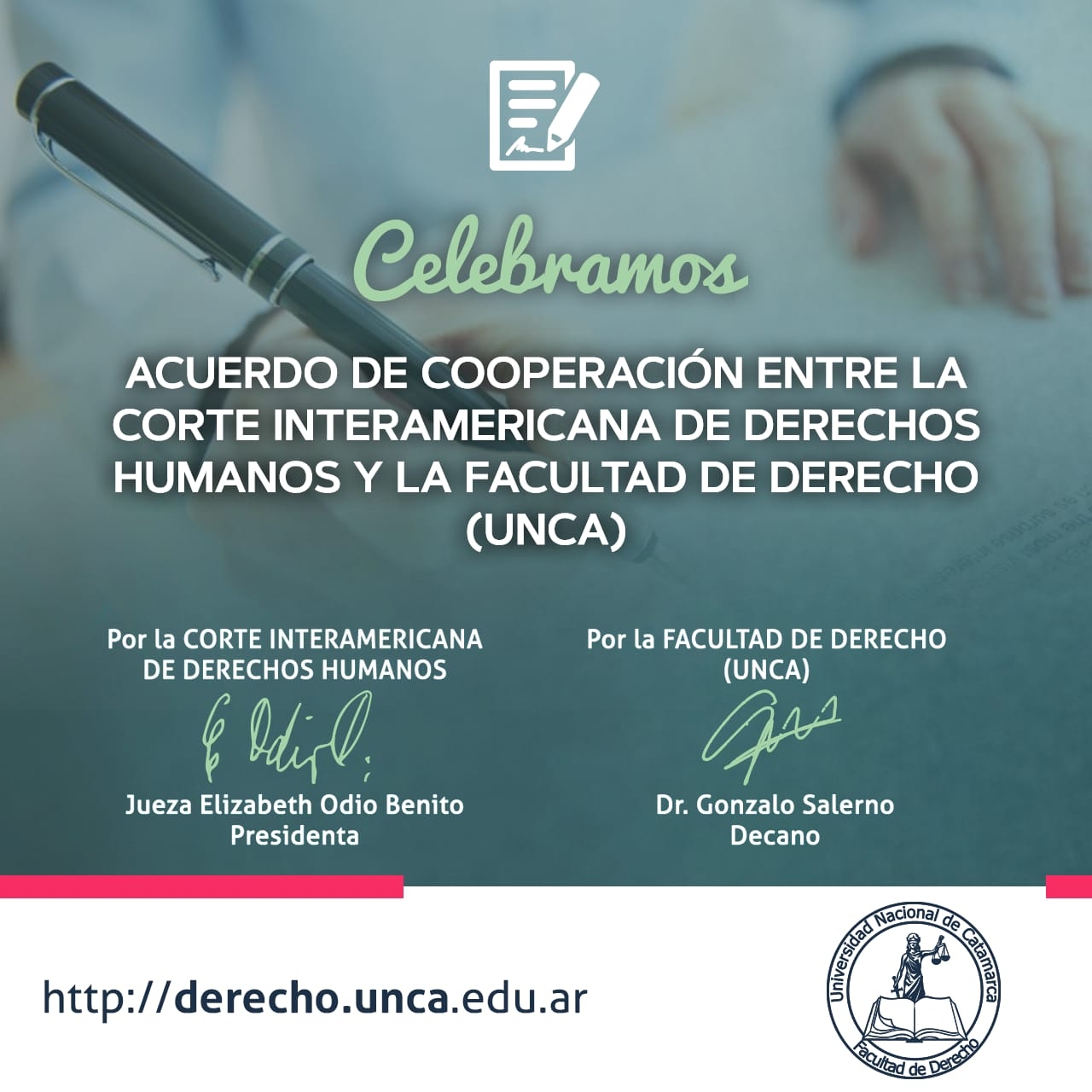 Entre las actividades acordadas, se destacan la realización de congresos, seminarios y conferencias, además de la puesta en marcha de prácticas profesionales de funcionarios y egresados de la Unidad Académica y pasantías de estudiantes en la Corte Interamericana.