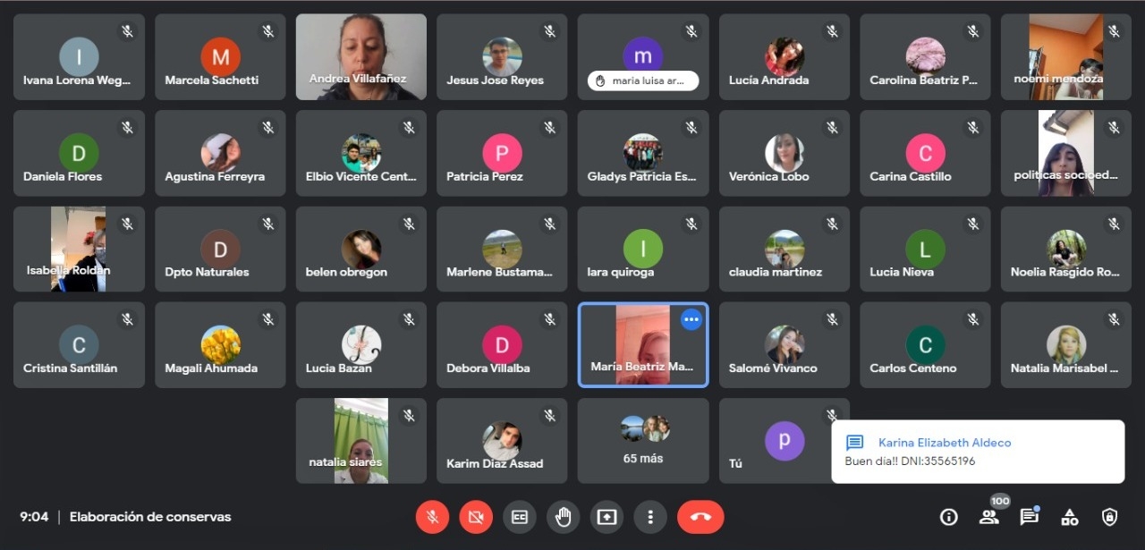 En esta oportunidad, en el encuentro virtual que contó con la participación de más de cien docentes, la ingeniera Andrea Villafañe instruyó a los participantes sobre "Conservas de frutas y hortalizas a nivel familiar".