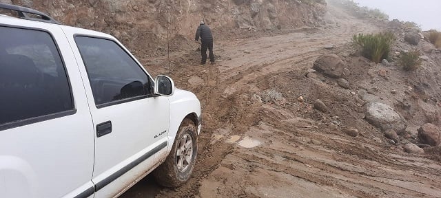 Para llegar a horario, había salido a las 6, de la ciudad de Belén. Pasó Corral Quemado y subió la cuesta. “Fue un tramo muy difícil, de mucho barro; había llovido toda la noche. No nos podíamos parar por el agua y la pendiente. El vehículo no salía. Pudimos llegar a las 11.30 porque apareció un tractor, con dos personas. Nos acercaron unos metros para poder salir de la pendiente con barro. Por consejo de ellos, no debía seguir porque estaba muy feo. Aunque en realidad estaba lindo, la idea era no arriesgar la camioneta ni mi integridad. Les pregunté dónde iba y me dijeron que a Culampajá. No dudé y me fui con ellos. Llegamos a las 14.30 y a las 15 estuvimos volviendo porque la lluvia y la neblina habían comenzado a precipitarse”, contó.