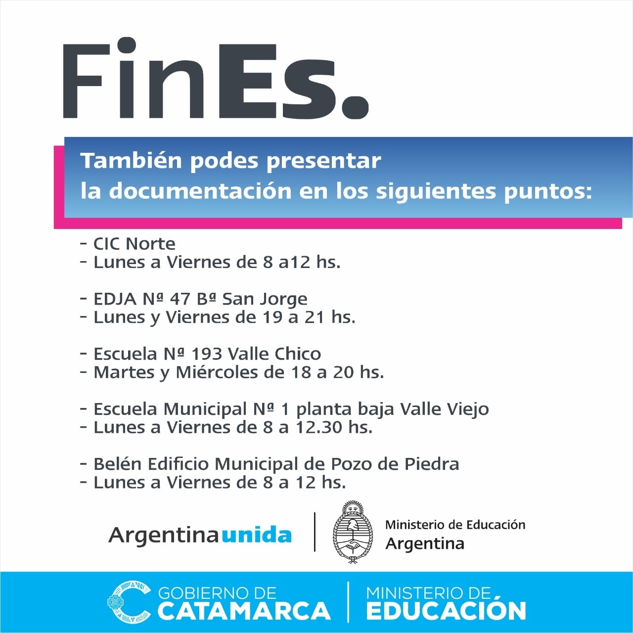 - Escuela Municipal Nª 1 planta baja Valle Viejo - lunes a viernes de 8 a 12,30 hs.