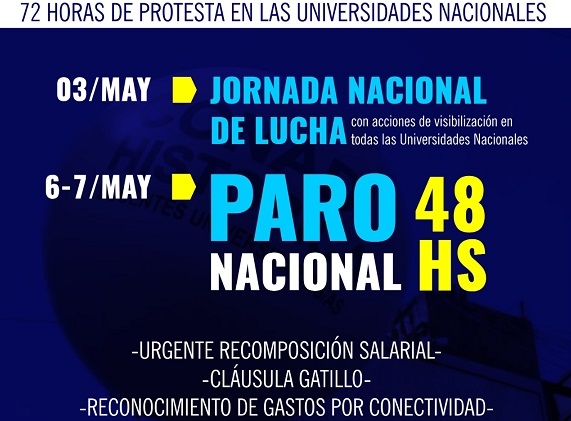 Asimismo, el próximo lunes 3 de mayo, se llevará a cabo una jornada nacional de protesta.
