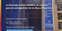 Además, el Ministerio dispuso un segundo punto de acceso a la Beca en la sede de Escuela Activa, ubicada en 9 de Julio esquina Mota Motello. Aquí se brinda asistencia de lunes a viernes de 9 a 12.30 hs y de 14.30 a 18.30 hs. hasta el 21 de mayo inclusive.
