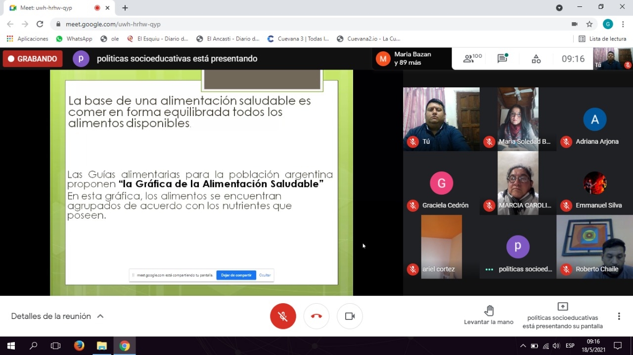 Dando continuidad con las capacitaciones que se vienen realizando desde el Ministerio de Educación y la Dirección Provincial de Políticas Socioeducativas y Alimentarias, a cargo de Gabriel Bulacio, en conjunto con INTA, se llevó a cabo un nuevo encuentro virtual sobre “Alimentación Saludable con productos de la Huerta”.