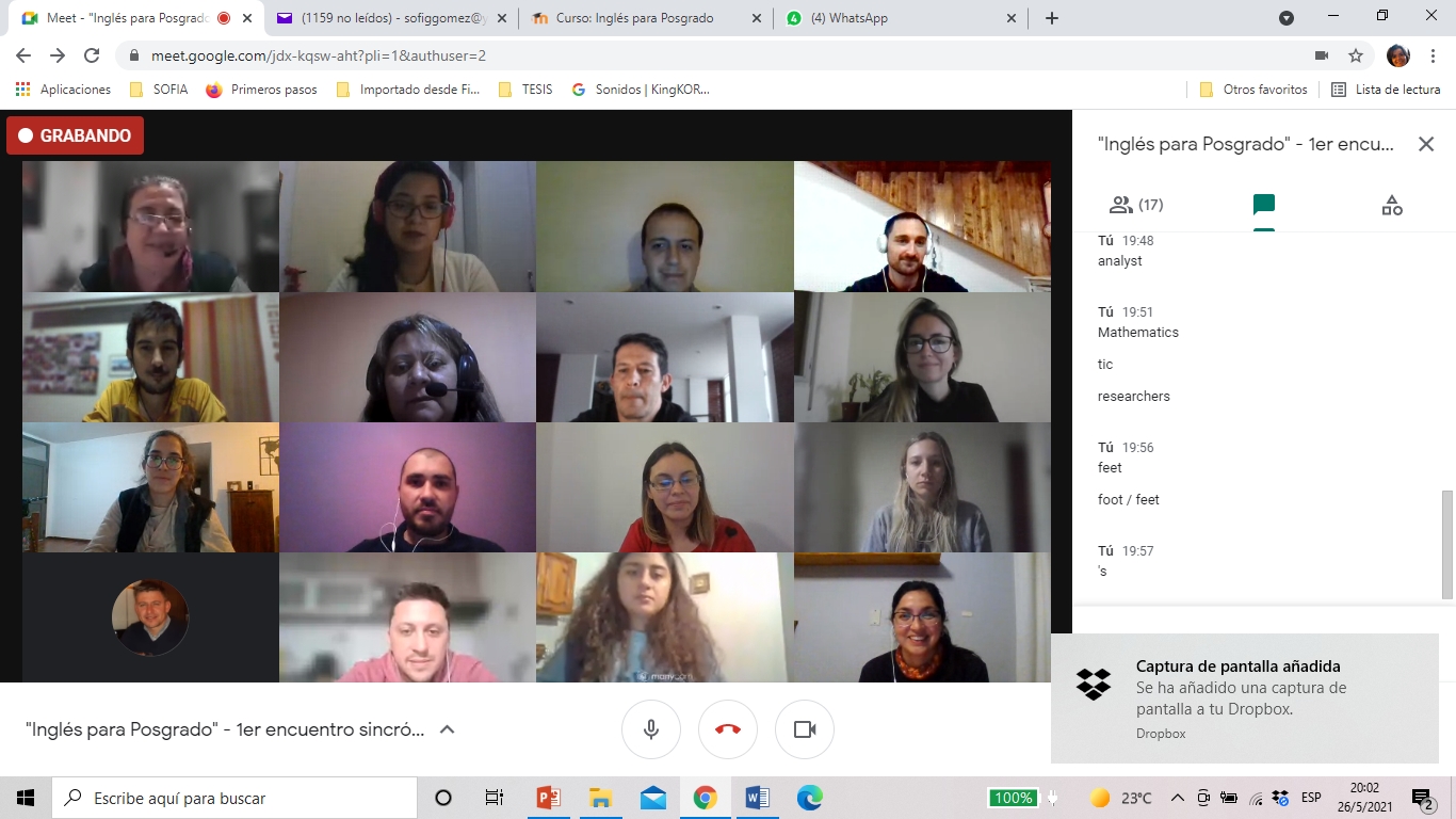 Las clases se llevarán a cabo hasta el 30 de junio próximo. Docente responsable es la Esp. Sofía Gómez. Está dirigido a profesionales, alumnos de carreras de posgrado que necesiten acreditar la prueba de suficiencia de idioma en carreras de posgrado o interesados en actualizar su nivel de inglés.