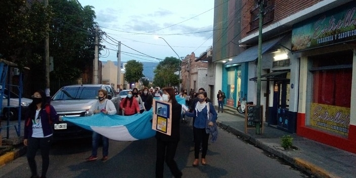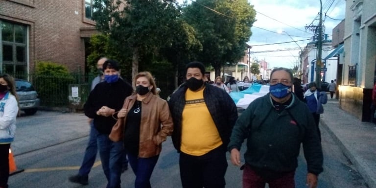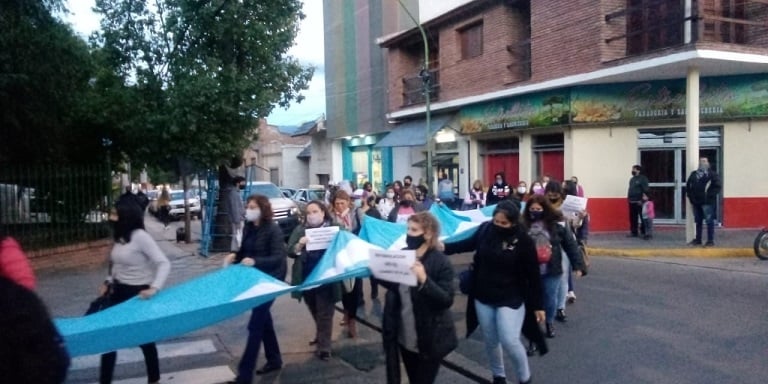 La concentración fue en la esquina de Rivadavia y Mota Botello, donde funciona el IES y luego los manifestantes se dirigieron a Plaza 25 de Mayo, donde hicieron escuchar su malestar.