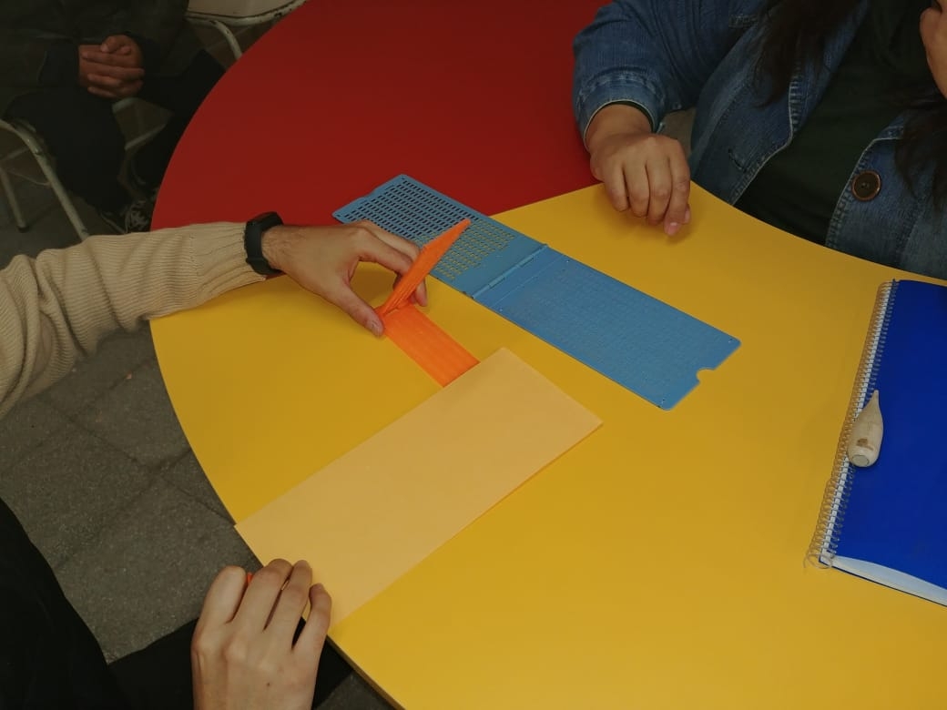 Esta acción se enmarca en un trayecto de formación docente, destinado a quienes tienen a cargo alumnos incluidos con discapacidad visual, con el principal objetivo de fortalecer el vínculo a través de la escritura en sistema Braille personalizada.