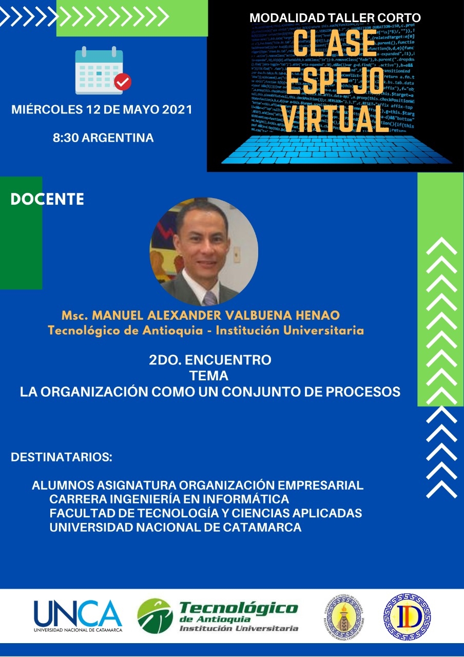 En el primer encuentro, que estuvo a cargo del docente Msc Manuel Alexander Valbuen Hena del Tecnológico de Antioquia, se trató “La organización como un sistema abierto a la luz de la teoría general de sistemas”, destinado a alumnos de la cátedra Organización Empresarial - Ingeniería en Informática - Facultad de Tecnología y Ciencias Aplicadas - UNCA.