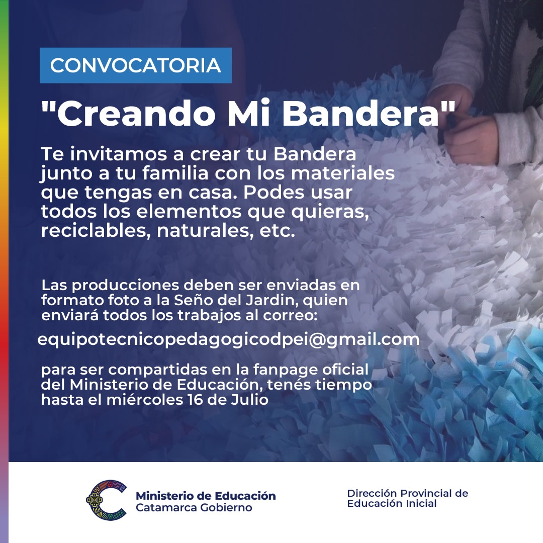 De esta manera, se invita a las docentes e instituciones que deseen socializar las producciones enviar fotos de los trabajos para ser compartidas por la Dirección Provincial de Educación Inicial en la fanpage oficial del Ministerio de Educación, hasta el miércoles 16 de junio a la dirección de correo electrónico:
