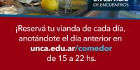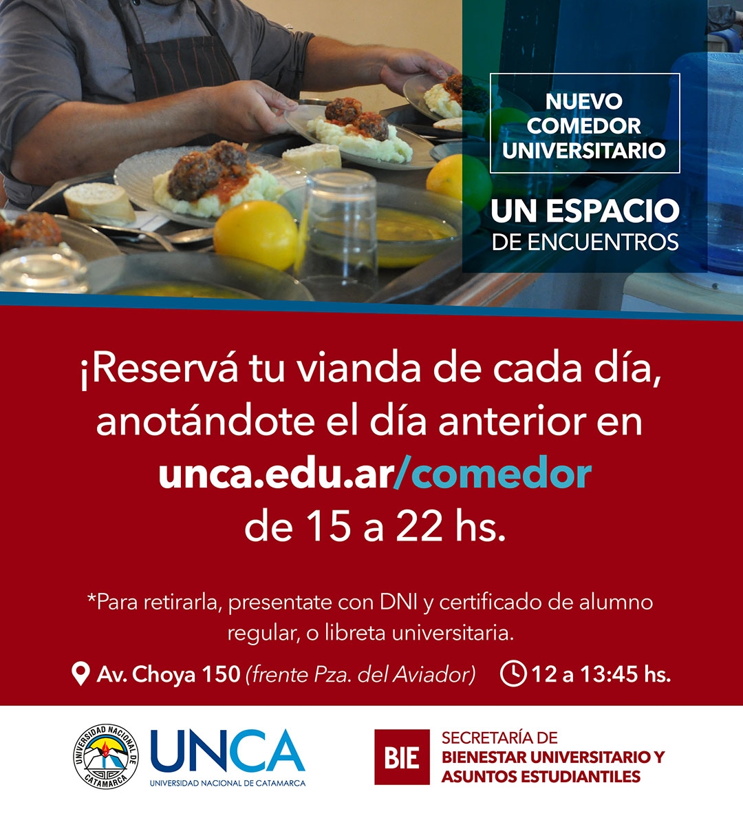 A su vez, el funcionario explicó que recientemente se habilitó un link para reservar la ración y de esta manera, tener una certeza del número de personas que retirarán el menú. El estudiante interesado deberá ingresar a unca.edu.ar/comedor de las 15 hasta las 22 horas para confirmar que accederá al servicio. “Además, pueden ingresar a nuestra fanpage de Facebook o por Instagram, donde se les brinda toda la información necesaria”, finalizó.