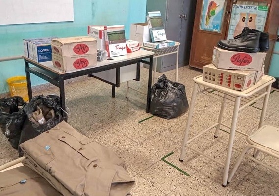 El Ministerio de Educación de la Provincia junto al Secretario de Planeamiento Educativo Gustavo Soto visitó la Escuela Secundaria Nº 18 “Ejército de los Andes” para hacer entrega de mobiliario para las aulas (sillas y pupitres), elementos escolares y de librería con resmas de papel A4 y oficio, lapiceras, reglas, repuestos de block rayado y cuadriculado. Además se entregó indumentaria de trabajo con pantalones y camisas de grafa para el personal y botines de trabajo.