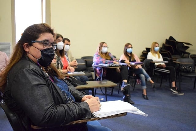 La ministra de Educación, Andrea Centurión junto a la secretaria de Mujer, Género y Diversidad, María Carrizo, Andrea Fernández en representación de la Secretaría Nacional de la Niñez, Adolescencia y Familia (SENAF), Marisa Plaza y Carola Ferreyra por Plan Enia Catamarca, la secretaria de Gestión Educativa, Brenda Hidalgo, la supervisora Gral. Monica Diaz, el director de Programas Educativos, Luciano Guillou, la coordinadora, María Argerich y demás directivos del Ministerio de Educación, e integrantes de la Secretaría de Familia de la provincia, con el equipo jurisdiccional de ESI Catamarca, se reunieron para aunar criterios y aprobar el documento denominado "Marco de Referencia para la Organización de la Vida Institucional de los Establecimientos Educativos de la Provincia de Catamarca”.