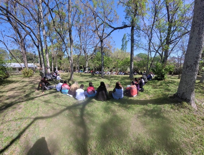 La Feria de Proyectos Ambientales contó además con la visita de evaluadores que reforzaron la devolución inicial, realizada vía mail, mediante un enriquecedor intercambio presencial con los alumnos y docentes expositores. La jornada, además, contó con la valiosa presencia de Alejandro Ayala, narrador oral, ludoeducador y guardaparque quien a través de taller “Sendero de Cuentos” incentivó a un público compuesto por más de 100 personas de todas las edades hacia el cuidado del ambiente. Esa actividad culminó con la siembra de semillas de ceibo y el acompañamiento de la guitarra de un profesor de música del ISFT 151 de Mar del Plata que interpretó la divertida e instructiva “Chacarera de los Tachos”.