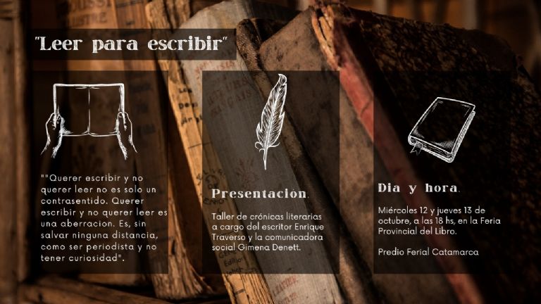 La cita es este miércoles y jueves a las 18 horas, en la XIV Feria Provincial del Libro y el taller estará a cargo del escritor Enrique Traverso y la comunicadora social Gimena Denett.