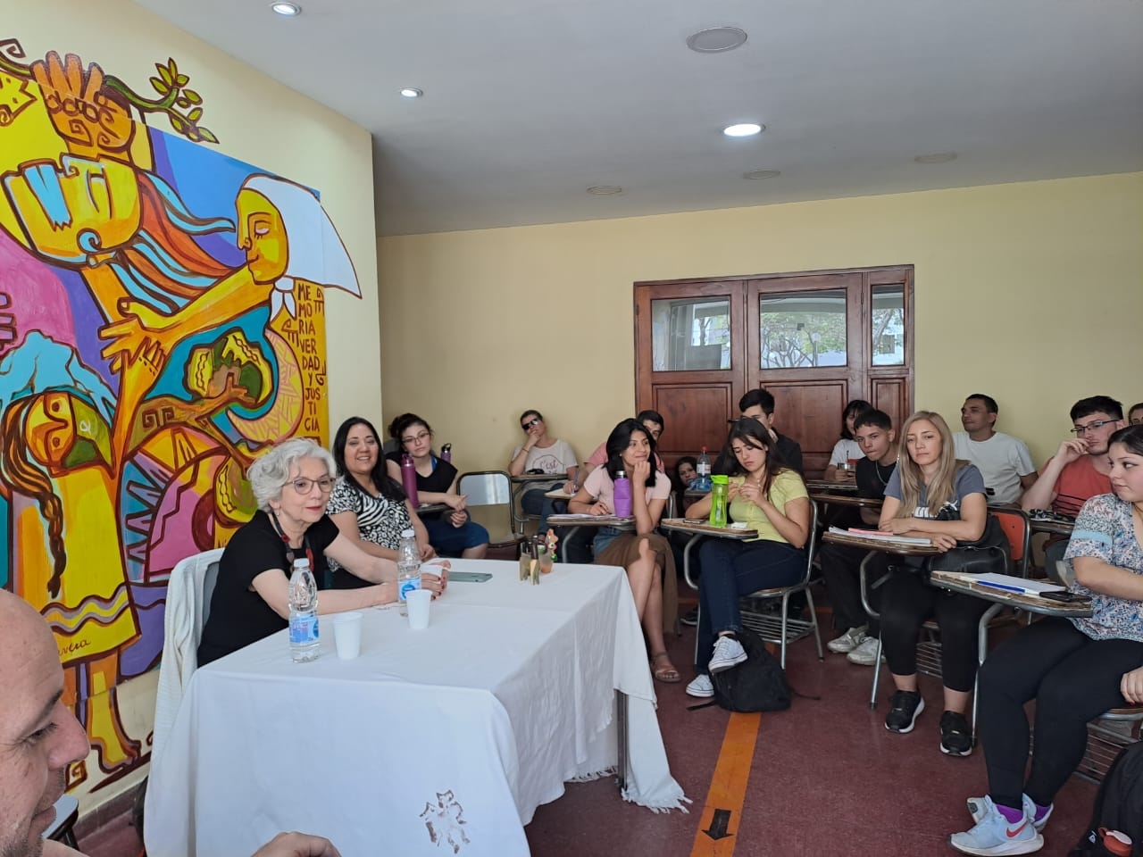 El conversatorio, organizado por el Taller de Gestión Cultural Participativa de la Escuela de Arqueología, a cargo de la Lic. Gabriela Granizo, estuvo especialmente orientado a los estudiantes de dicha Unidad Académica, por lo que se inició con un diálogo respecto a las experiencias de prácticas preprofesionales y las expectativas de realización de trabajos finales para completar las carreras.
