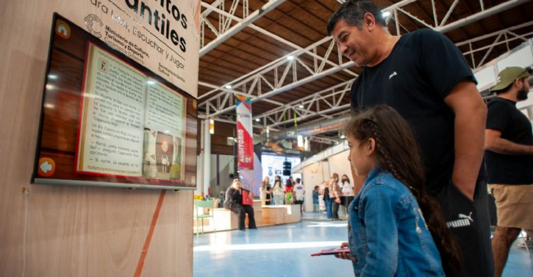 Además, en un sector del pabellón Peregrina Zárate hay pantallas con cuentos interactivos, donde los niños pueden acercarse a leer y escuchar un cuento. Una de las particularidades de estas pantallas es que están a la altura de los niños, además están pensadas para el acompañamiento parental, de manera que los chicos puedan disfrutar de su cuento favorito acompañados de sus padres. También tienen la posibilidad de interactuar con la historia, completando los dibujos, por ejemplo, colocándole la bota al gato del popular cuento.