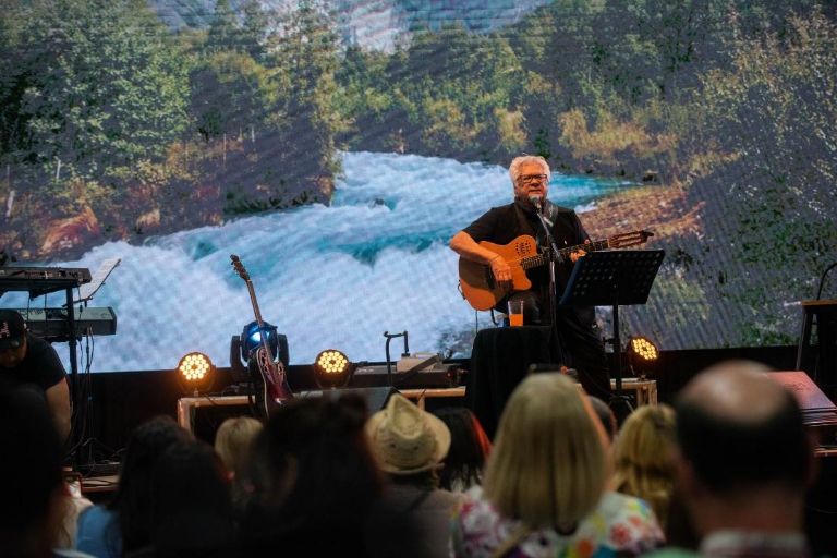 Luego de la charla, y ante un nutrido público que se acercó a compartir la última actividad de la Feria del Libro 2022, cantó varias de sus reconocidas canciones y firmó ejemplares de sus libros a sus lectores.